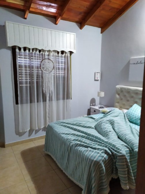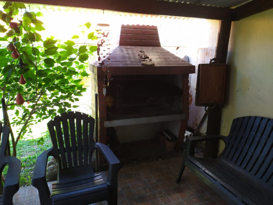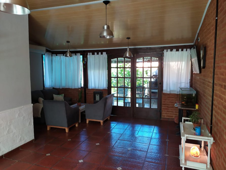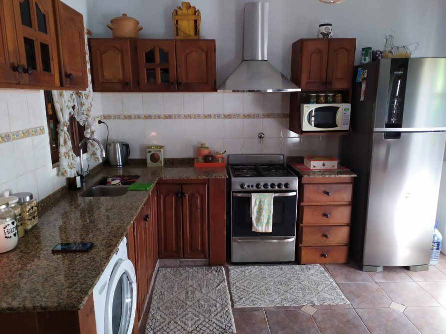 JARDIN AL FRENTE, AMPLIO ESTAR COMEDOR CON COCINA INCORPORADA (MUEBLES ALTOS Y BAJOS EN MADERA), PASO CON ESCALERA A PLANTA SUPERIOR, BAÑO COMPLETO CON DUCHA, COCHERA/QUINCHO CERRADO, PARRILLA CON ALERO Y JARDIN POSTERIOR LIBRE