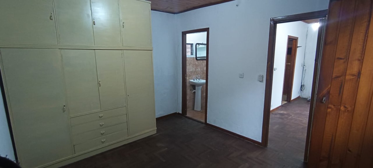 1 DORMITORIO c/piso parquet, abertura madera con rejas.