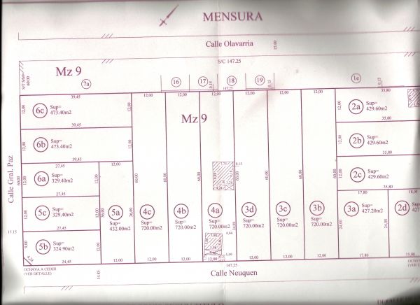 Lote 5A de 12 x 36 mts. Superficie 432m2 Precio: u$s 27.000.-