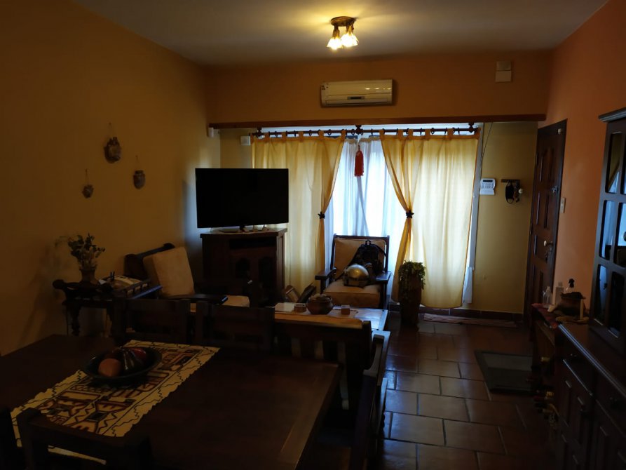 HALL DE ACCESO Y AMPLIO ESTAR COMEDOR, COCINA MUY BIEN EQUIPADA CON AMOBAMIENTO EN MADERA, 3 DORMITORIOS, 2 BAÑOS Y GARAGE PARA 1 VEHICULO.