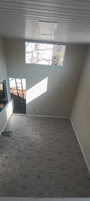 Cocina comedor integrada, con amplios ventanales. Dormitorio en planta alta. Baño. Jardín.